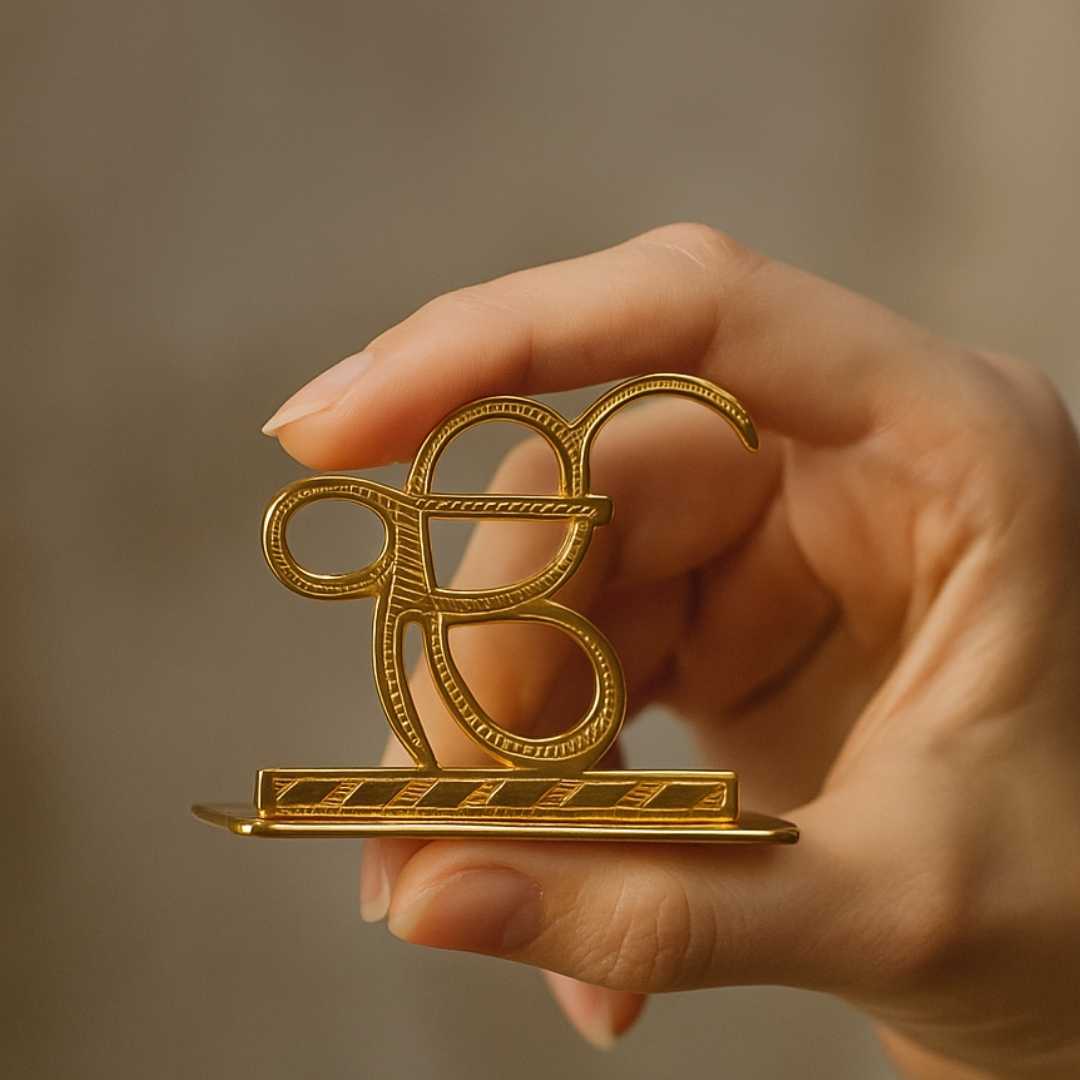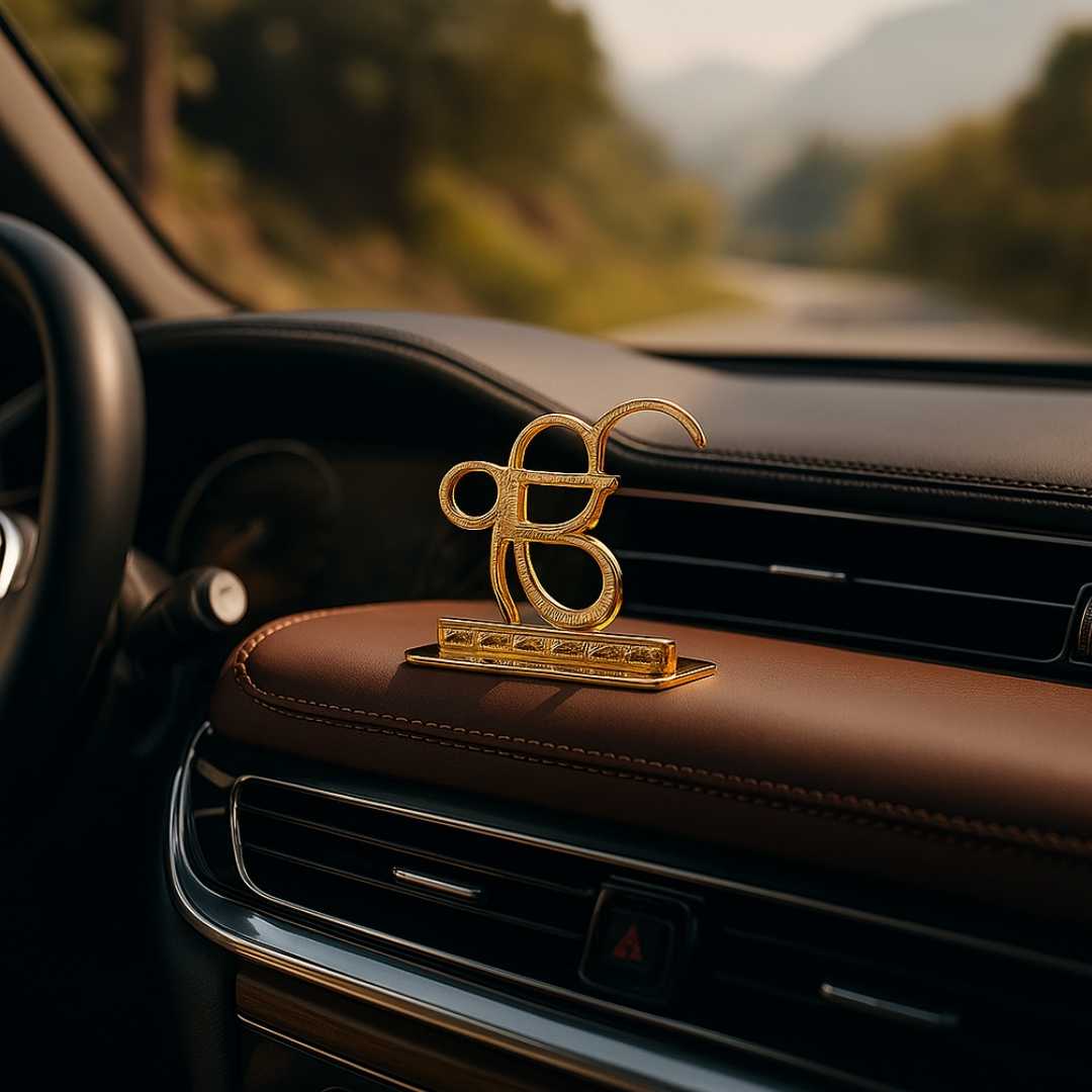 Elita Ek Onkar Design Car Dashboard Decorative Figurine, Gold-Plated Finish Brass, 6 cm