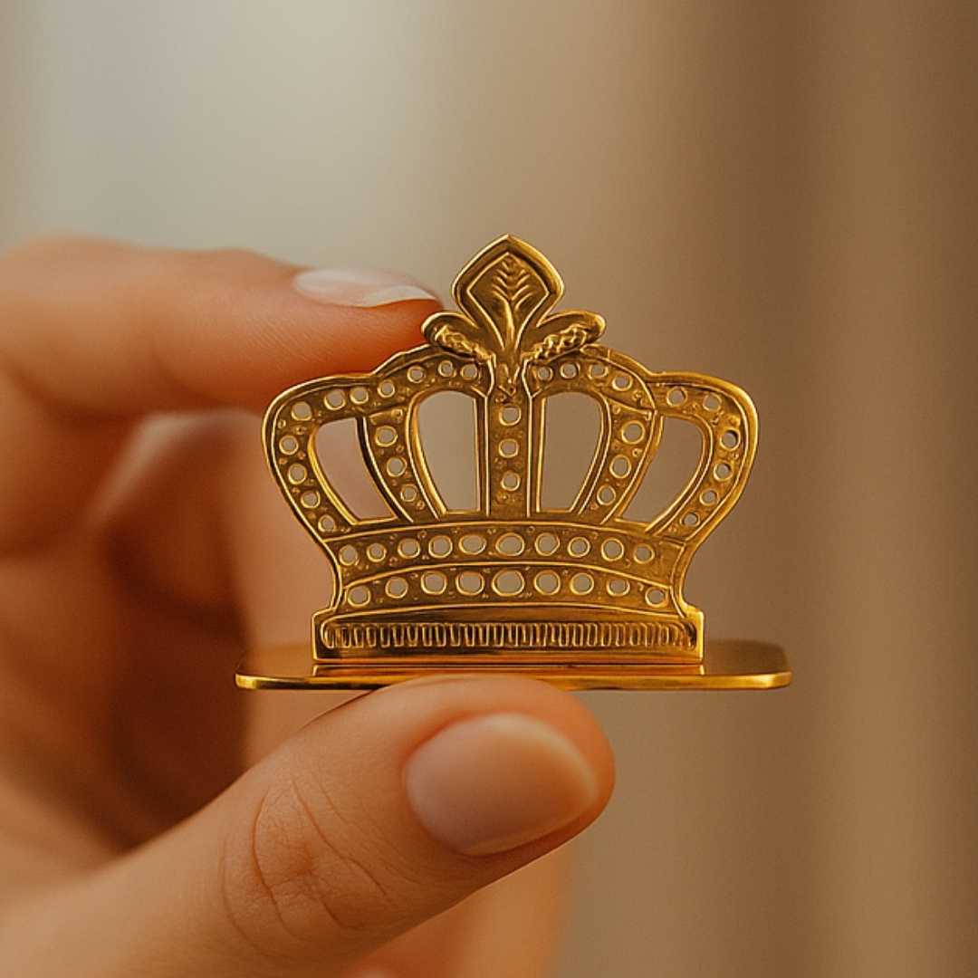 Elita Indian Crown Gold-Plated Finish in Brass Decorative Figurine for Car Dashboard, Modern Style, 6 x 6 cm