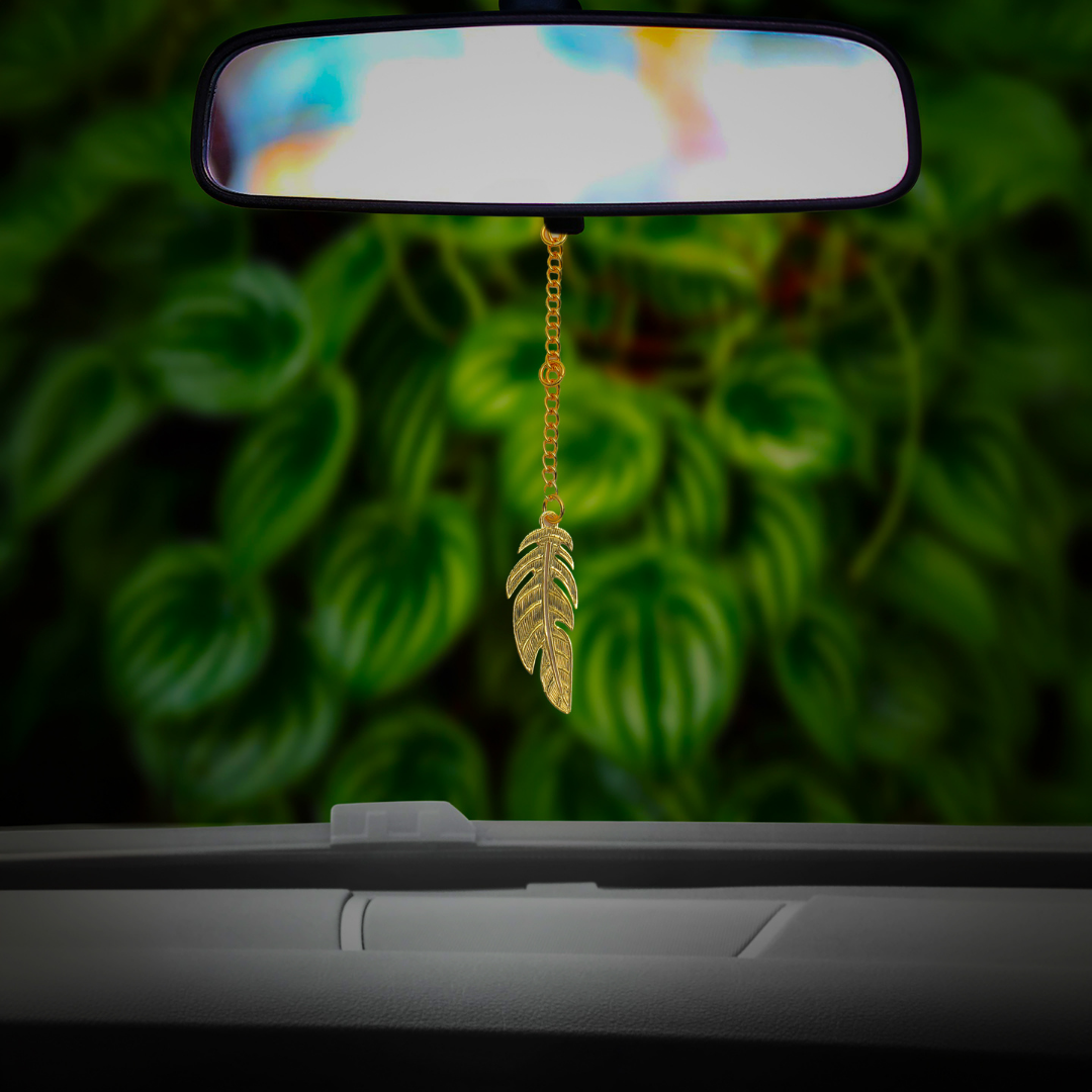 Elita Leaf Car Hanger in Brass with Gold Plated Finish for Car