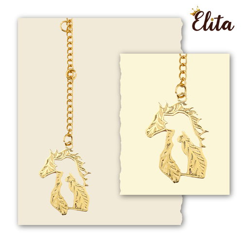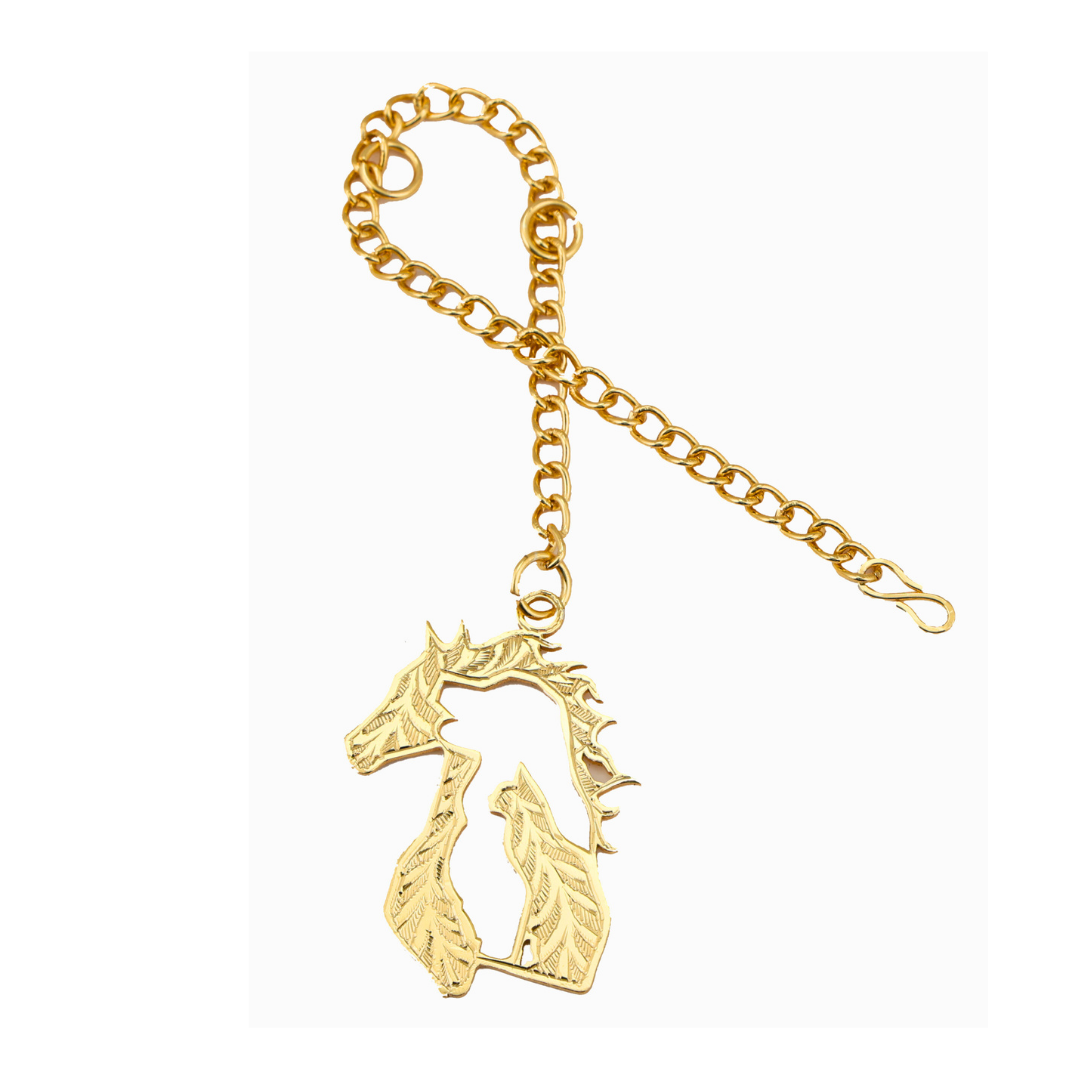 Elita Gold Horse Car Charm, Rearview Mirror Hanging Pendant, Gold-Plated Finish in Brass