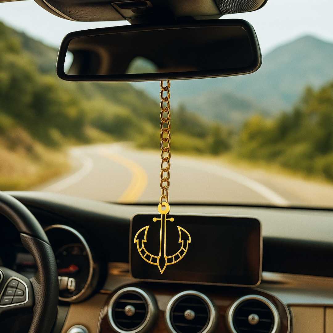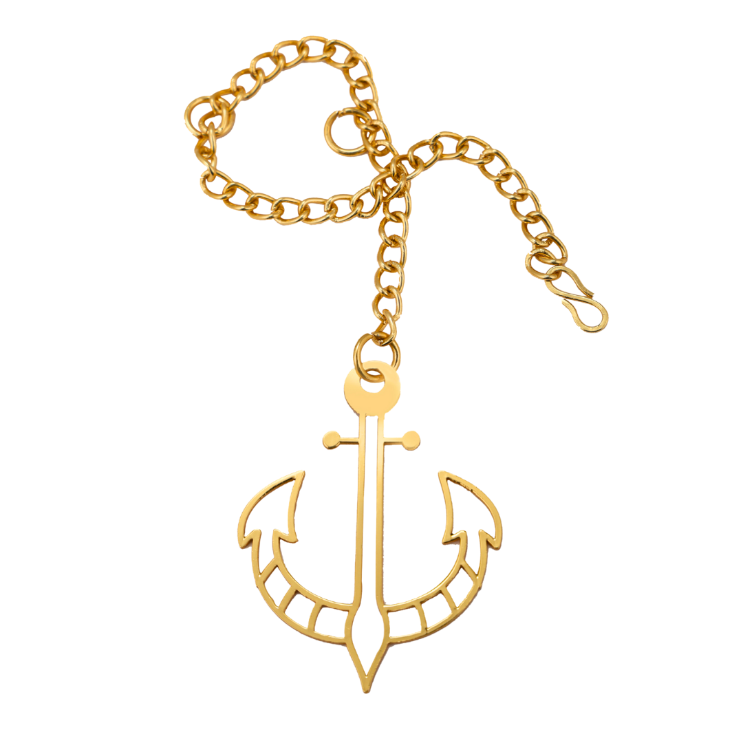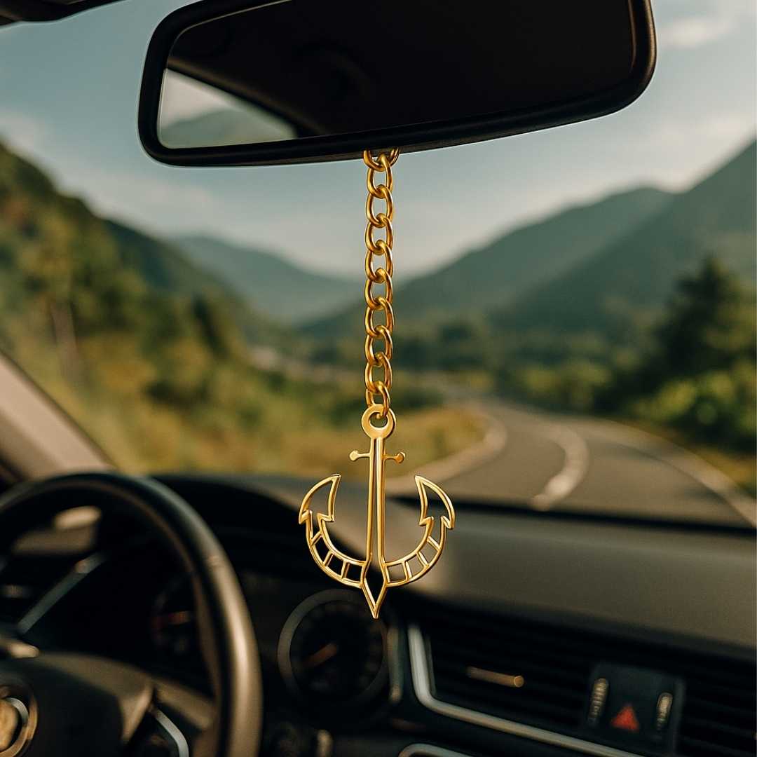 Elita Gold Plated Finish Brass Anchor Car Hanging with Chain, Nautical Design