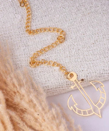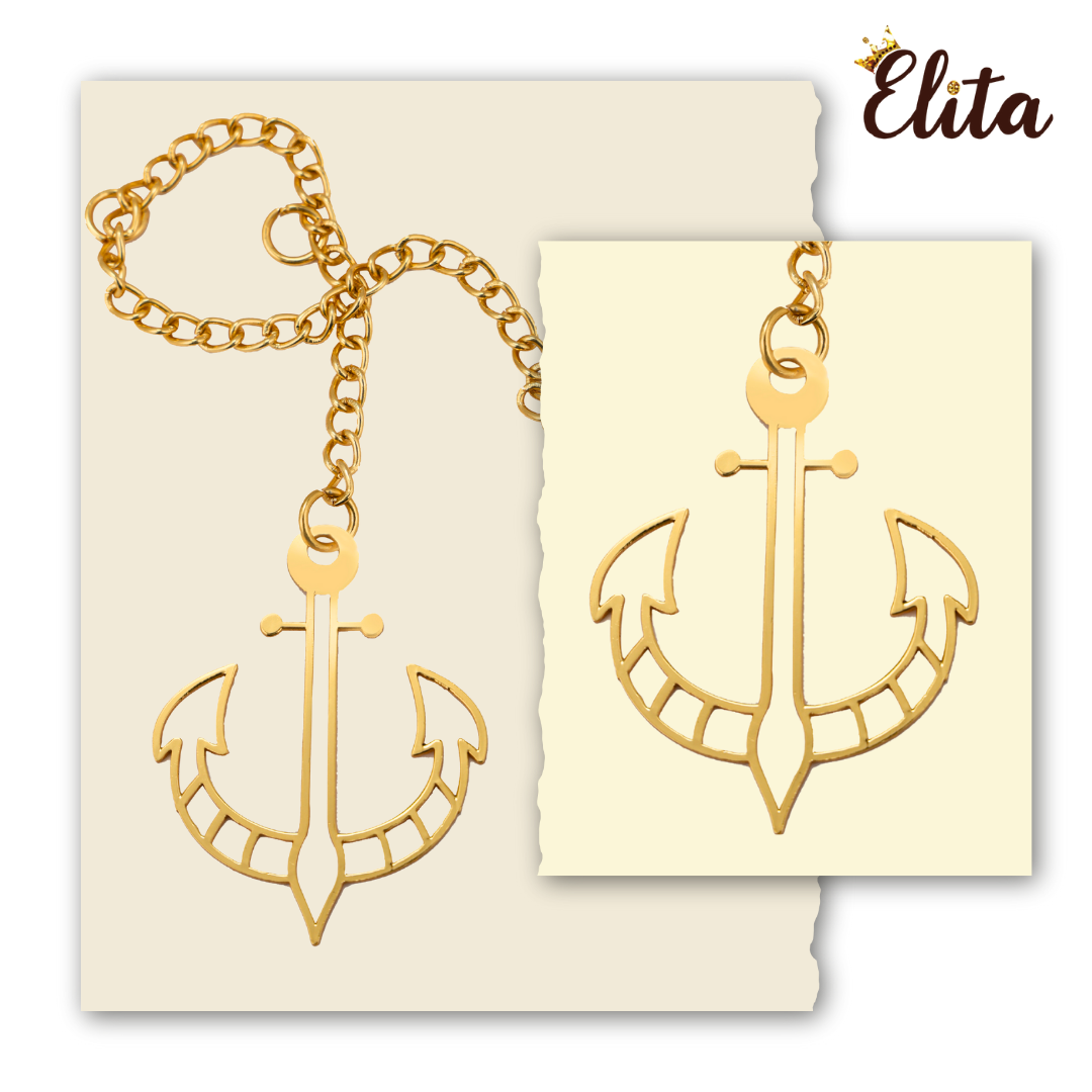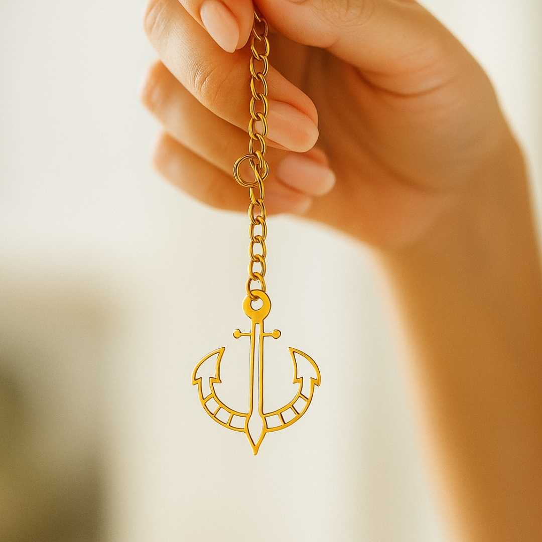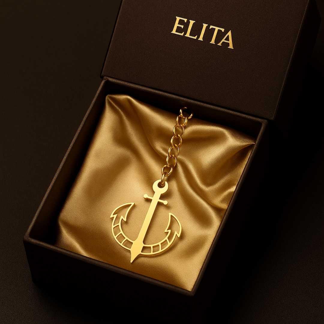 Elita Gold Plated Finish Brass Anchor Car Hanging with Chain, Nautical Design