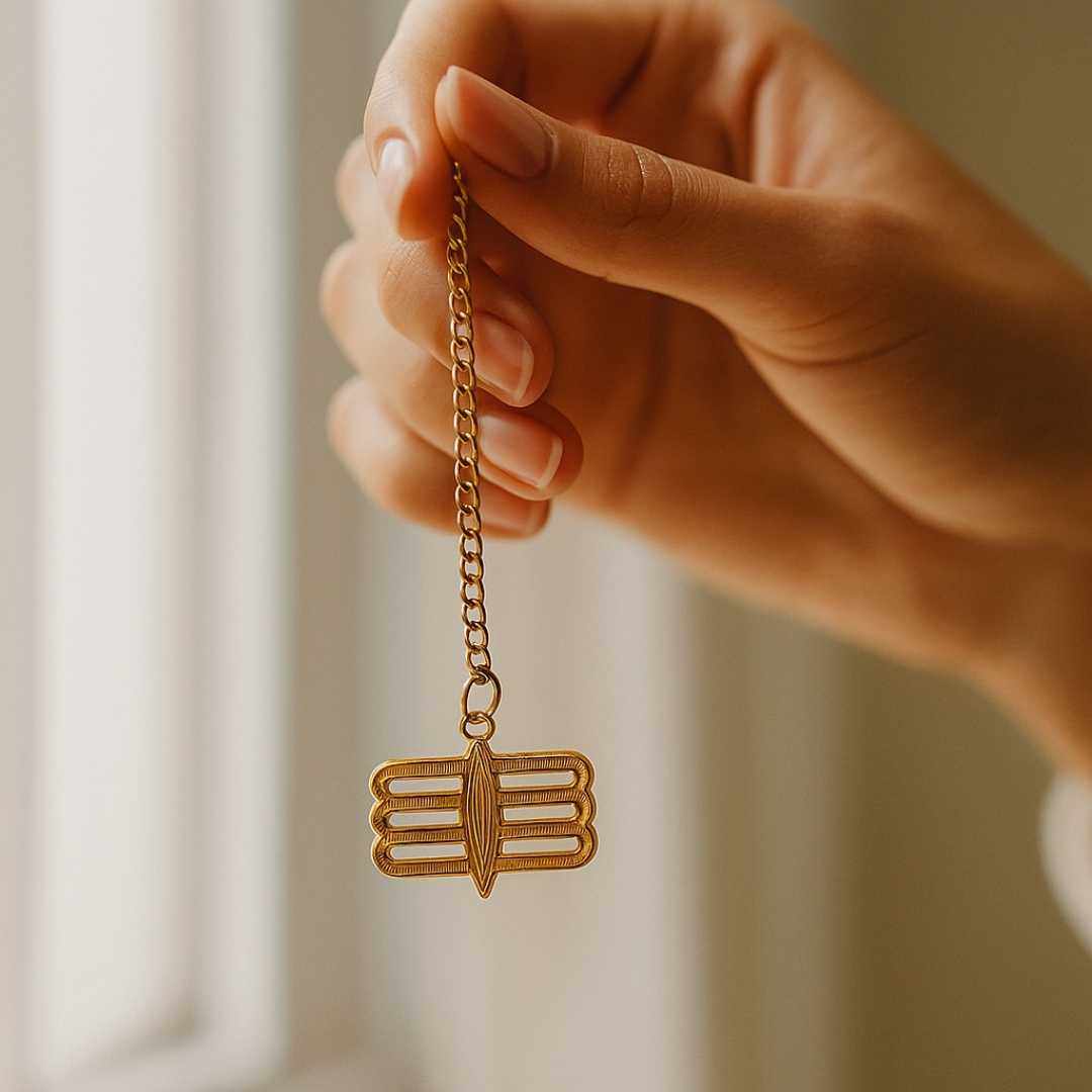 Elita Gold-Plated Finish in Brass Third Eye Car Hanging Rearview Mirror Charm, Decorative Chain Pendant