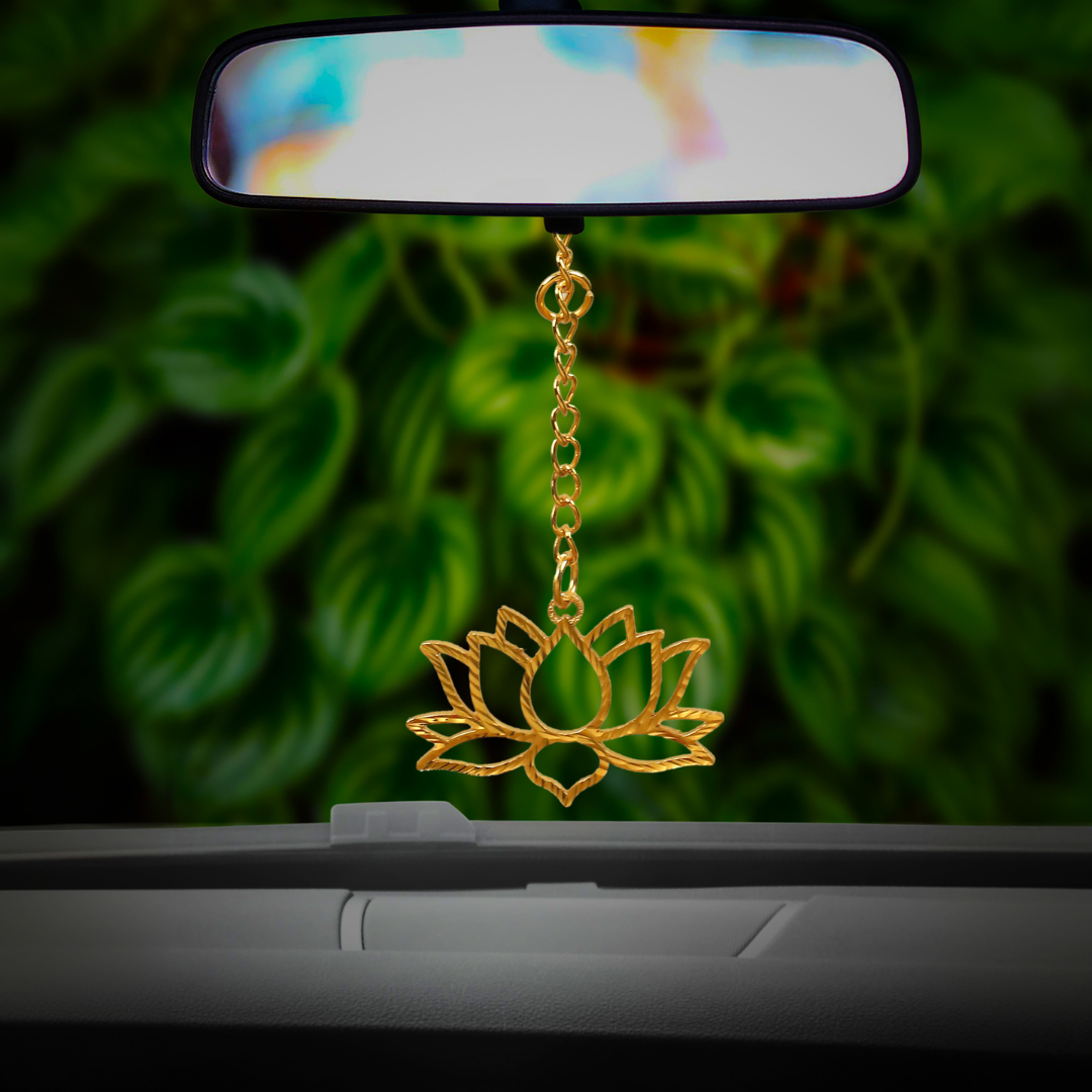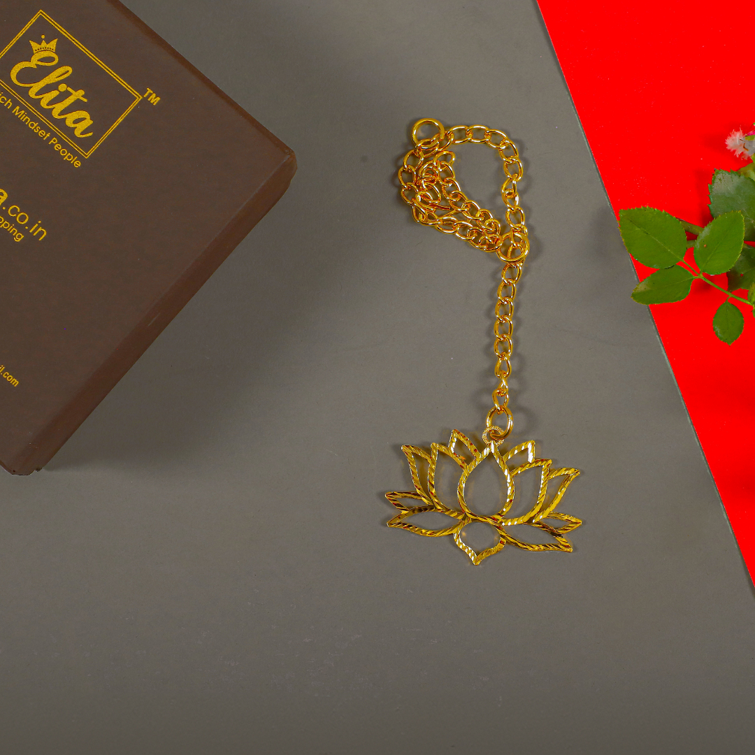 Elita Lotus Flower Shaped Car Hanging Charm in Brass with Gold Plated Finish