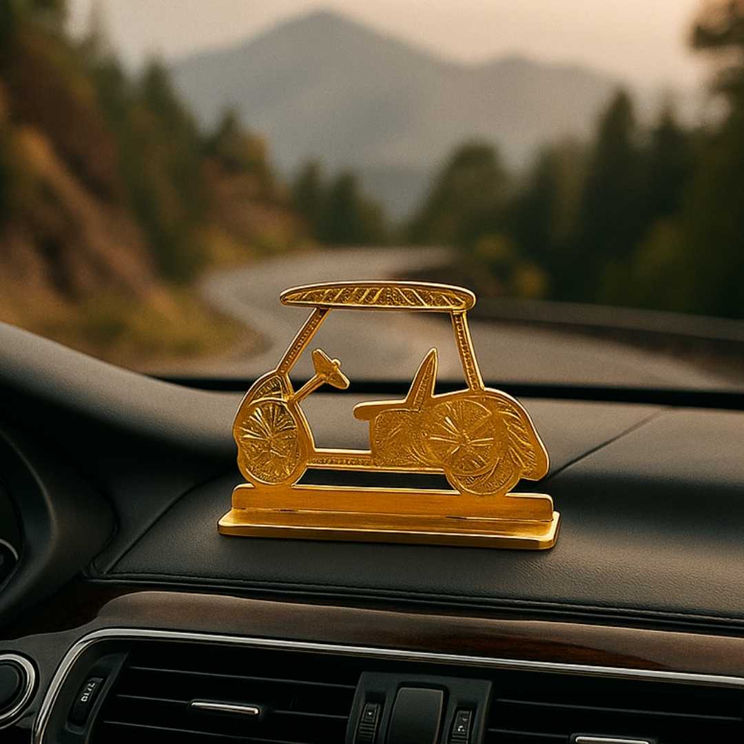 - PREMIUM MATERIAL: Crafted from high-quality brass with an elegant gold-plated finish, this decorative golf cart figurine adds a touch of sophistication to your car’s dashboard