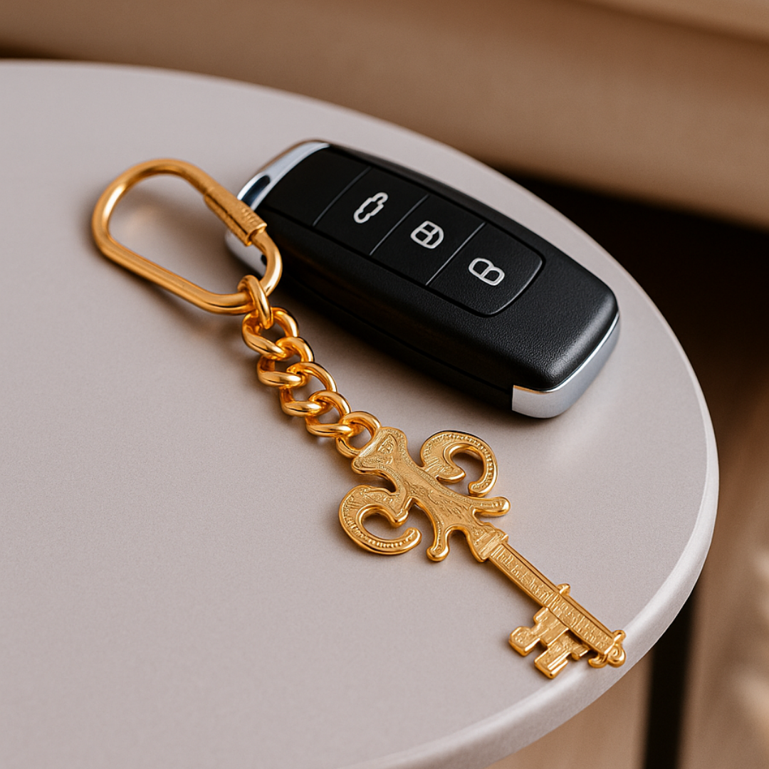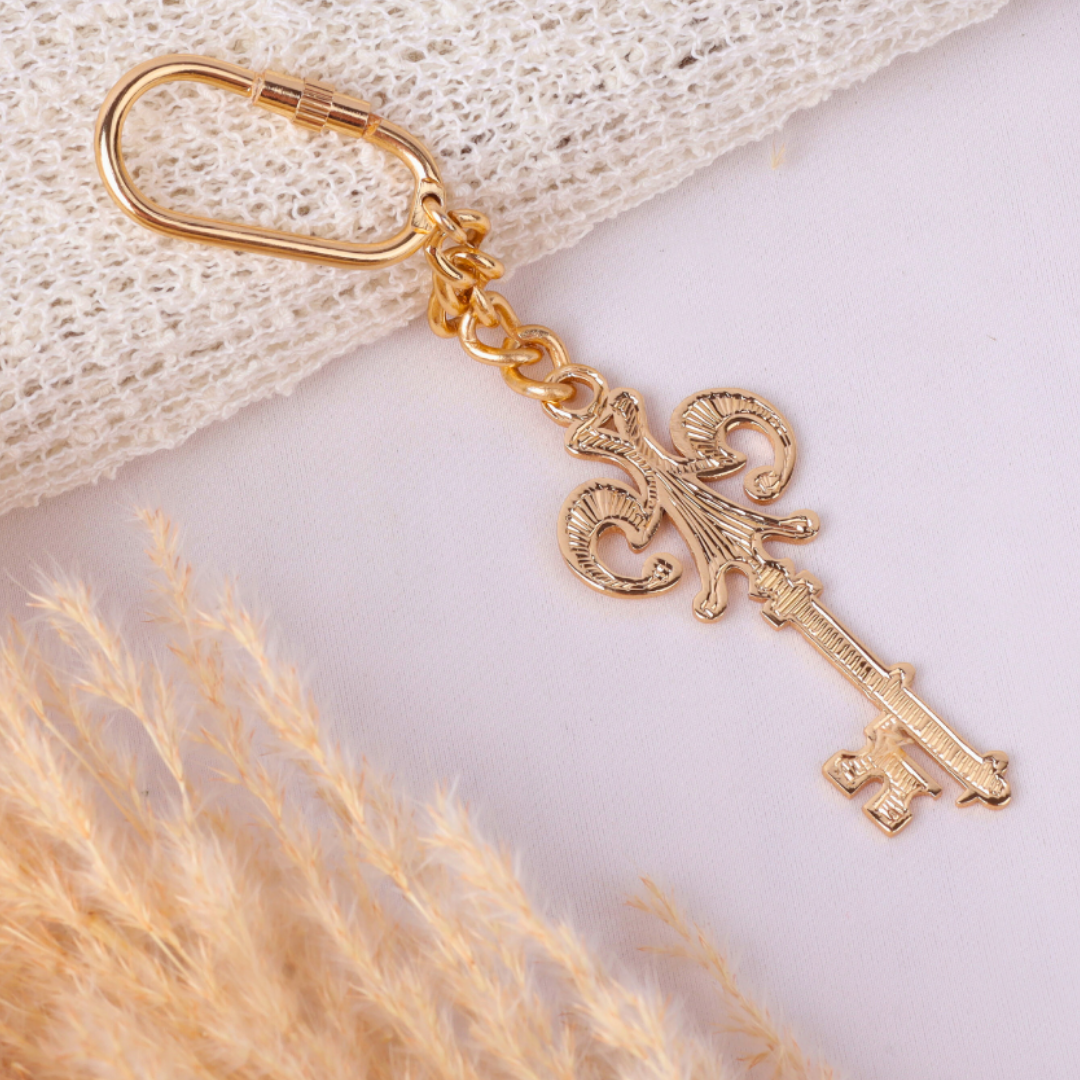 Add a touch of vintage elegance to your everyday carry with this exquisite decorative key keychain. The centrepiece features an ornate Fleur-de-lis design that exudes timeless sophistication and royal charm. Crafted with meticulous attention to detail, the key pendant showcases intricate scrollwork and dimensional elements that catch the light beautifully. The durable brass chain boasts a lustrous gold-plated finish that perfectly complements the decorative key. The practical lobster clasp ensures your keys stay securely attached while allowing easy attachment and removal. Whether used as a functional keychain or a decorative accessory for your handbag, this vintage-inspired piece adds a dash of sophistication to your daily essentials. The classic design makes it an ideal gift for those who appreciate ornamental accessories with historical significance.