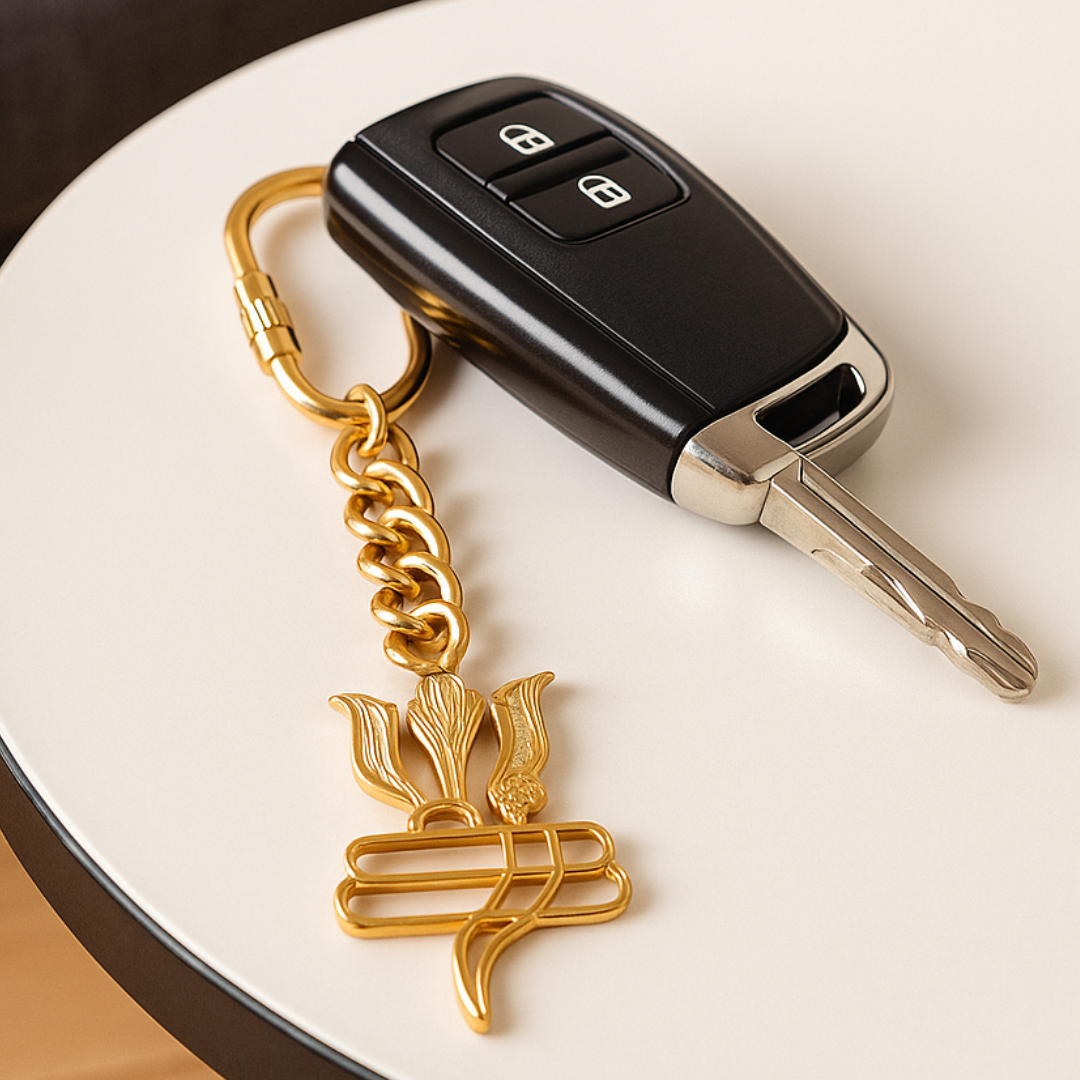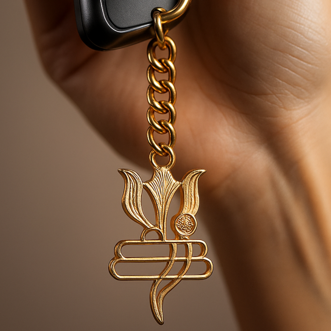 - DESIGN: Elegant gold-plated brass keychain featuring a stylised Shiva icon charm with intricate detailing