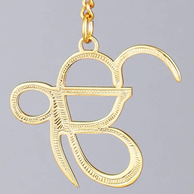 Elita Ek Onkar Car Rearview Mirror Hanging Charm, Gold-Tone Chain, Decorative Car Accessory