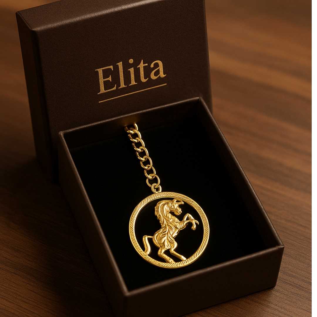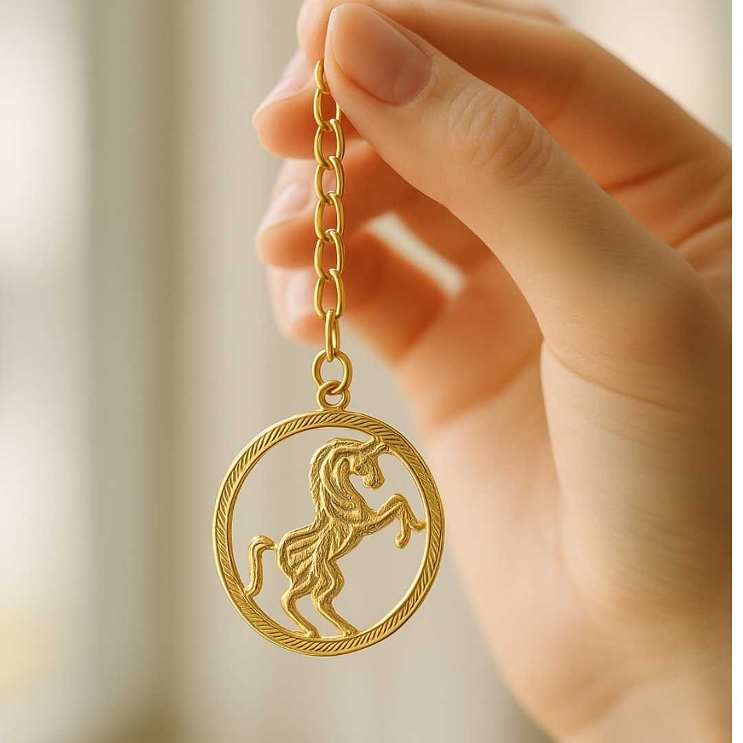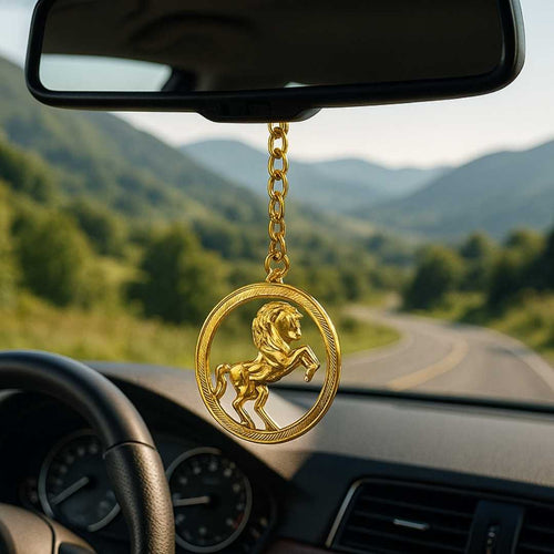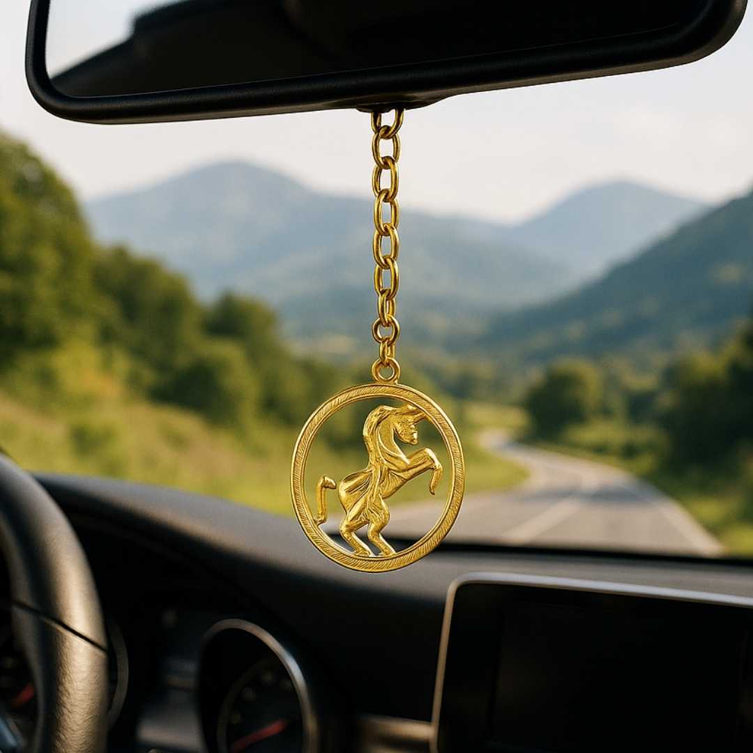 Elita Decorative Car Rearview Mirror Cross Pendant, Gold-Tone Chain, Gold-Plated Finish in Brass