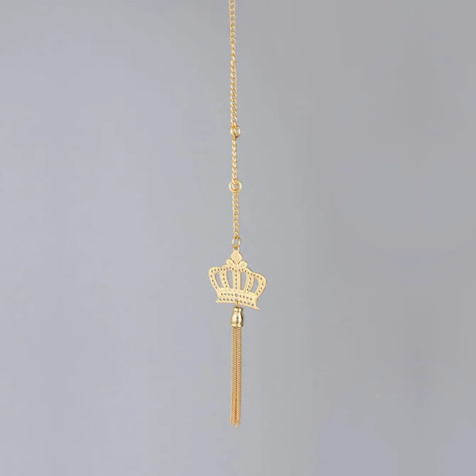 Elita Gold-Plated Finish in Brass Celestial Indian Crown Car Hanging, Chain Link Design