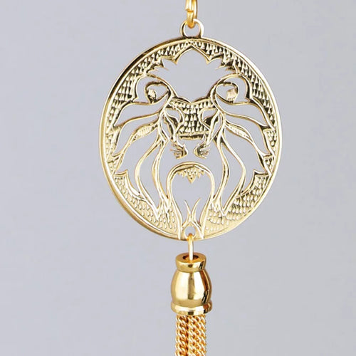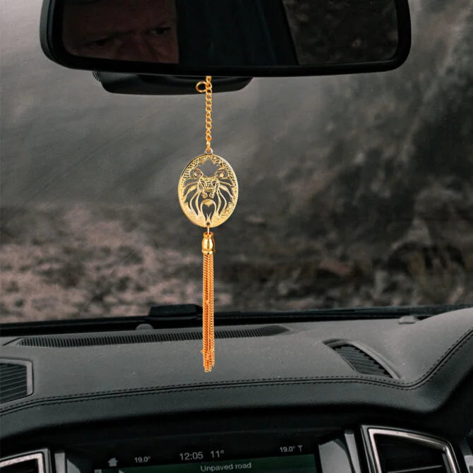 Elita Gold-Plated Finish in Brass Singal Lion Car Hanging, Chain Link Design