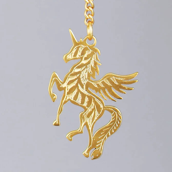 Elita Gold-Plated Finish in Brass Unicorn Car Hanging, Chain Link Design