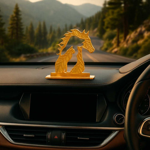 Elita Horse Design in Brass with Gold-Plated Finish Car Dashboard Ornament