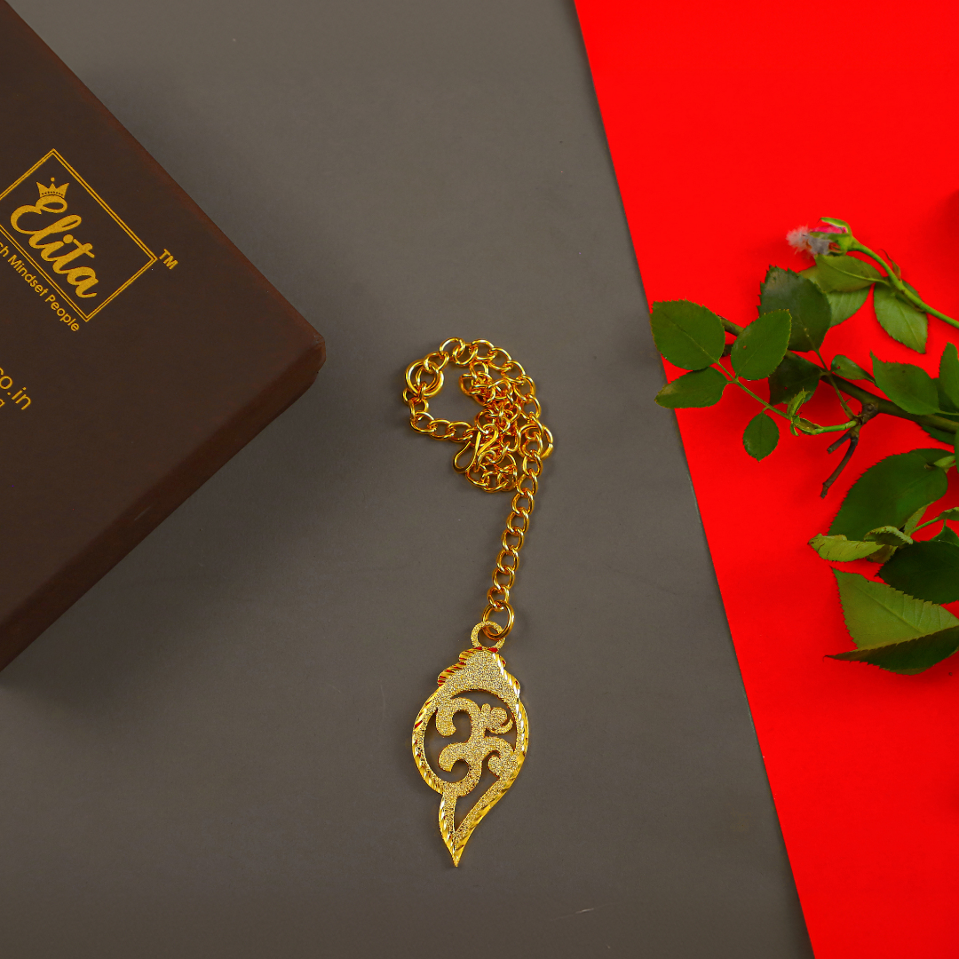 Elita Shankh with Om Car Hanging Charm in Brass with Gold Plated Finish