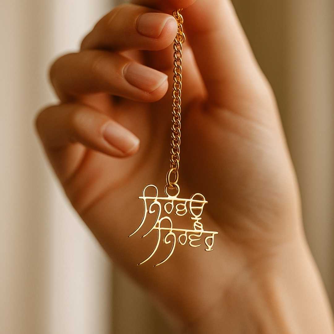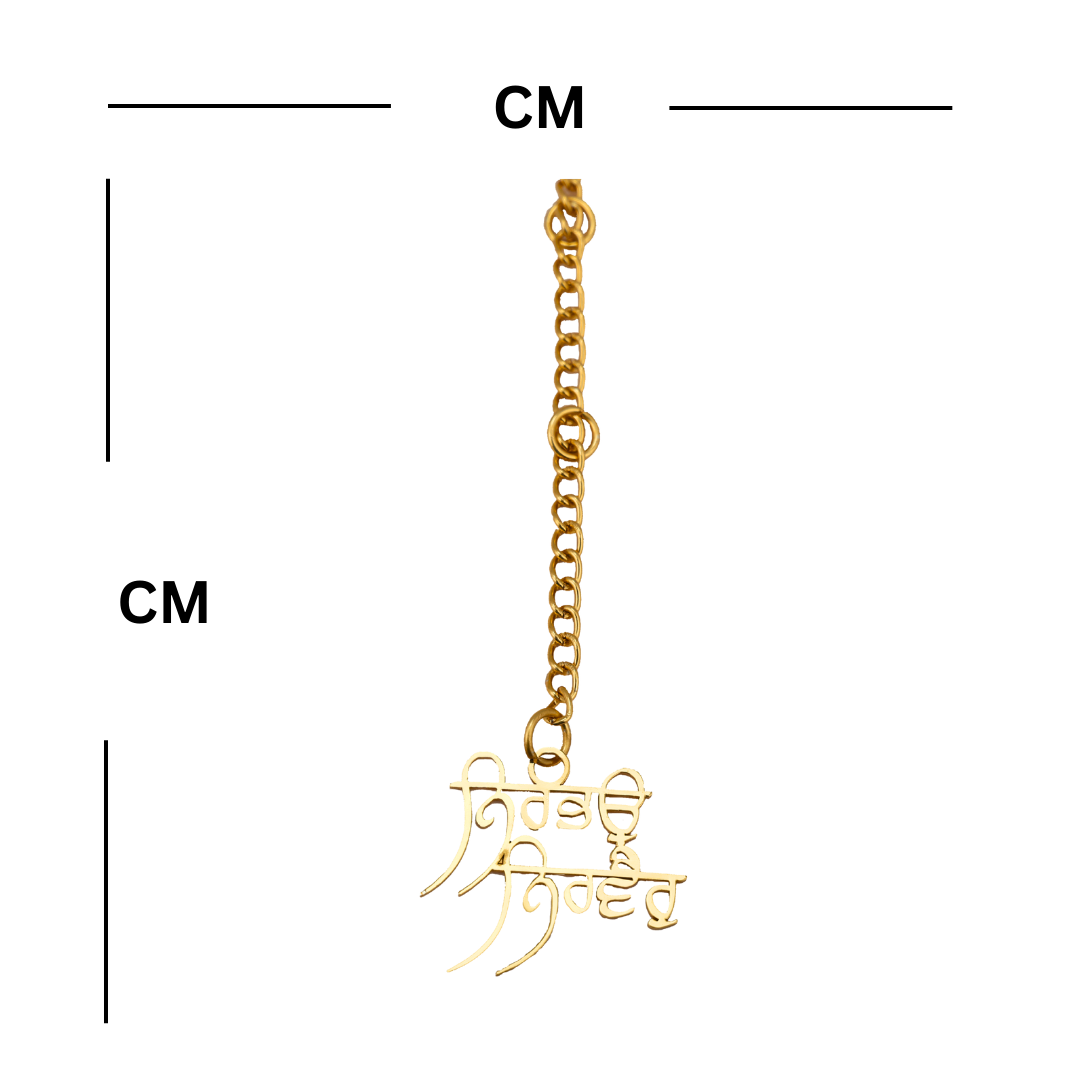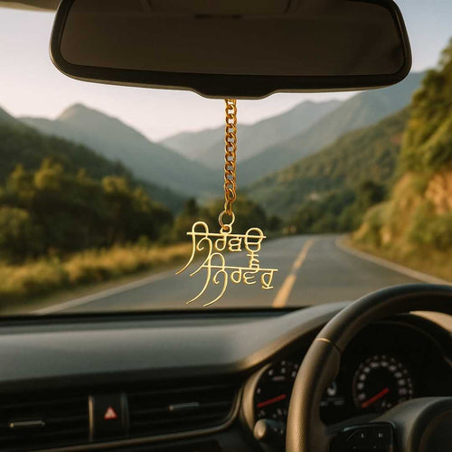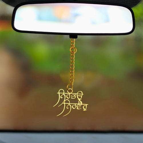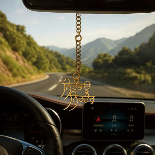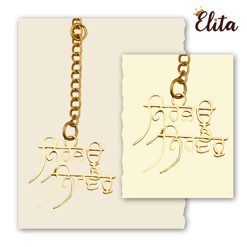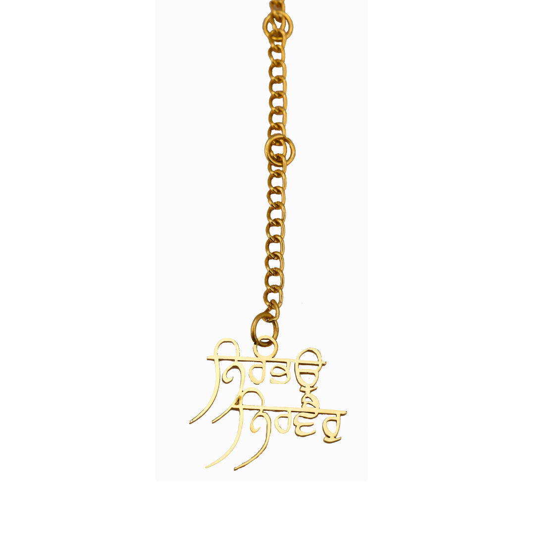 Elita Punjabi Religious Car Mirror Hanging Ornament, Gold Chain Pendant, Gold-Plated Finish in Brass