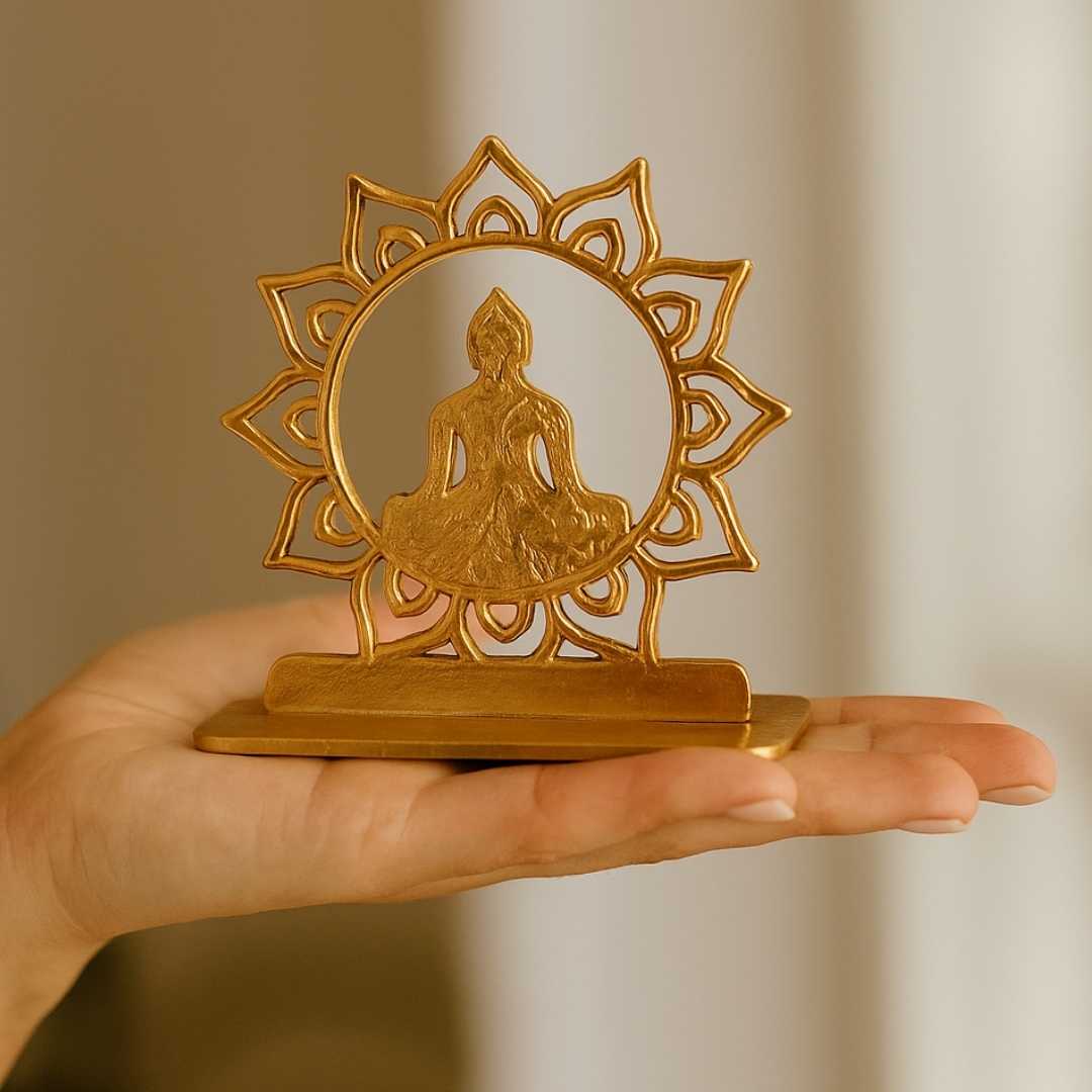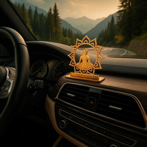 Elita Buddha Gold-Plated Finish in Brass Car Dashboard Decorative Figurine, 6 cm